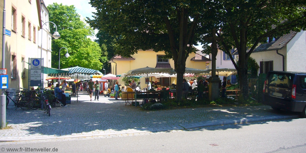 Auf dem Platz des früheren Ortsmittelpunkts, bei der alten Kirche (heute Bürgersaal) und dem alten Rathaus mit angrenzender Reinhold-Schneider-Schule, ist samstags Markttag. Die Bauern aus der Umgebung bieten ein großes Sortiment landwirtschaftlicher Produkte an. Auch kunsthandwerkliches gibt es zu entdecken und zu kaufen.